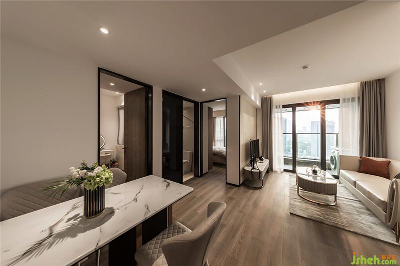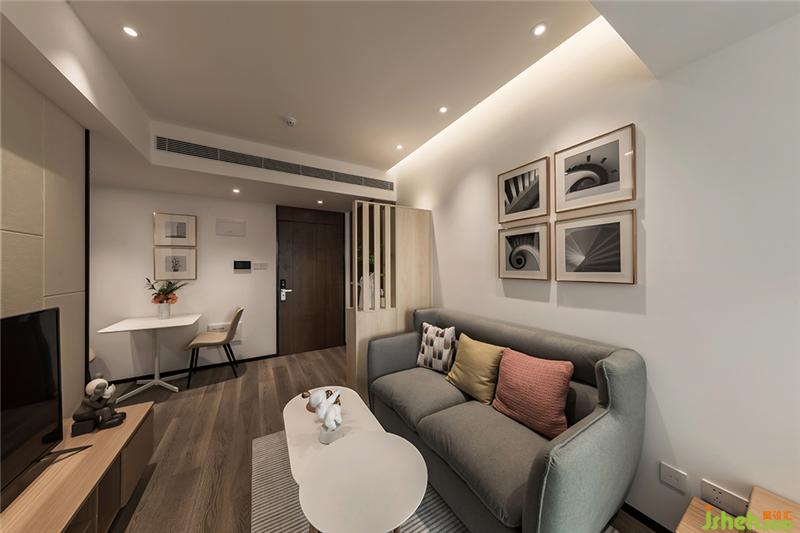 整個空間的吊頂沒有做任何修飾,就是平吊,刷白。遇到有梁的地方和空調(diào)內(nèi)機(jī)的地方就用高低疊級的處理方式解決深圳樣板房設(shè)計。整體做完簡單大氣,不做多余的手法,還節(jié)省了不少預(yù)算。