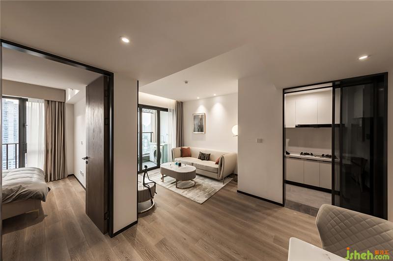 沿用公共區(qū)的簡(jiǎn)介,臥室的軟裝部分,用深咖及灰調(diào)子營(yíng)造出溫馨的環(huán)境深圳樣板房設(shè)計(jì)。