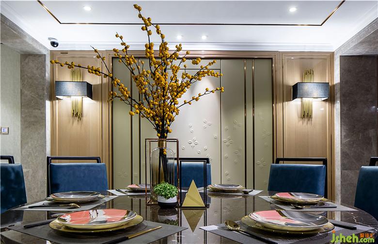 室內(nèi)設(shè)計(jì)師采用高級(jí)皮雕材料,巧妙搭配自然質(zhì)感的石材以及金屬元素,璀璨的金色和幾何經(jīng)典,給予色彩最大的禮贊。
