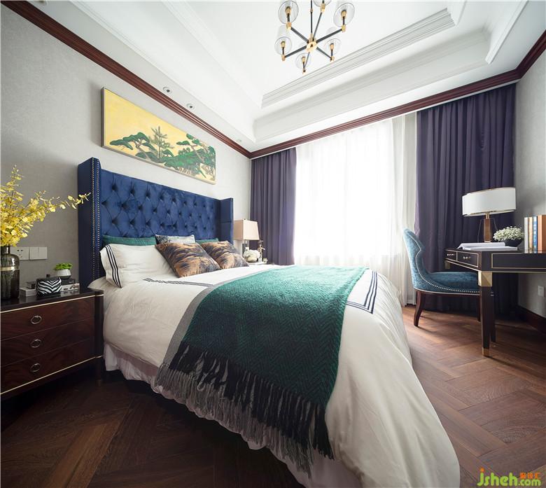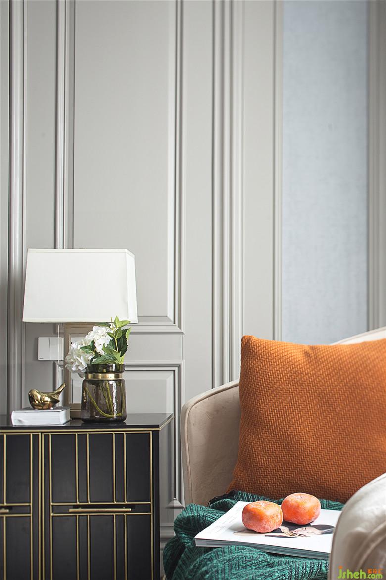 臥室散發(fā)著濃郁的美式情韻,醇美的軟飾和色彩,質(zhì)樸的淺灰色柔雅而安謐,凝結(jié)著高端而沉穩(wěn)的品位和質(zhì)感。幾何語(yǔ)言的紛繁典雅,搭配深棕色家具框架的線條感、水晶臺(tái)燈的剔透雅致,讓空間的魅力在無(wú)言中綻放升級(jí),兼容細(xì)膩的柔美與輕奢的風(fēng)華。