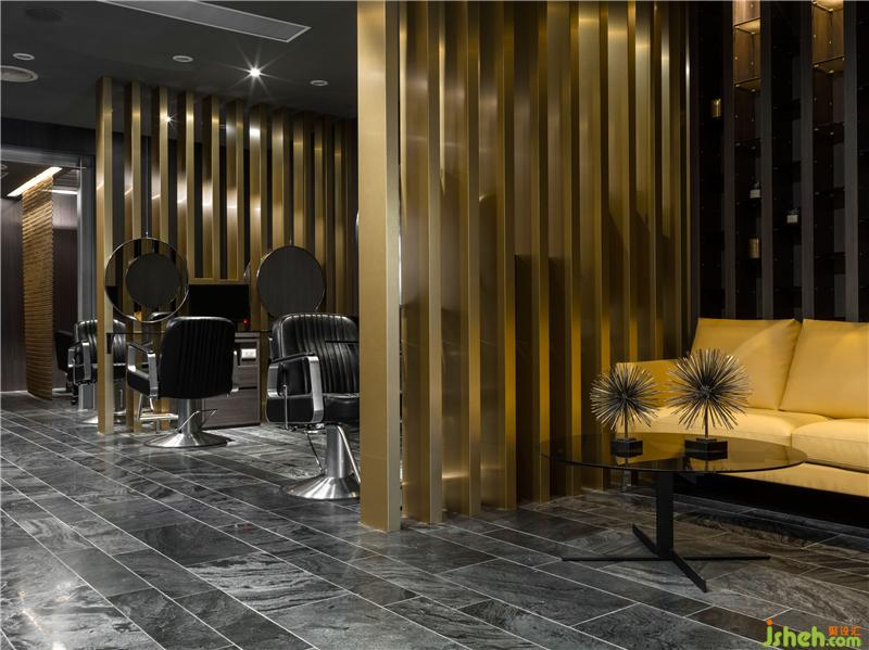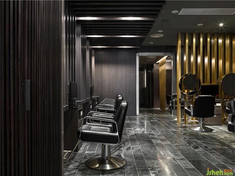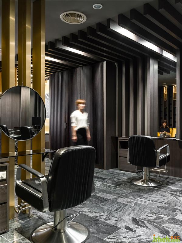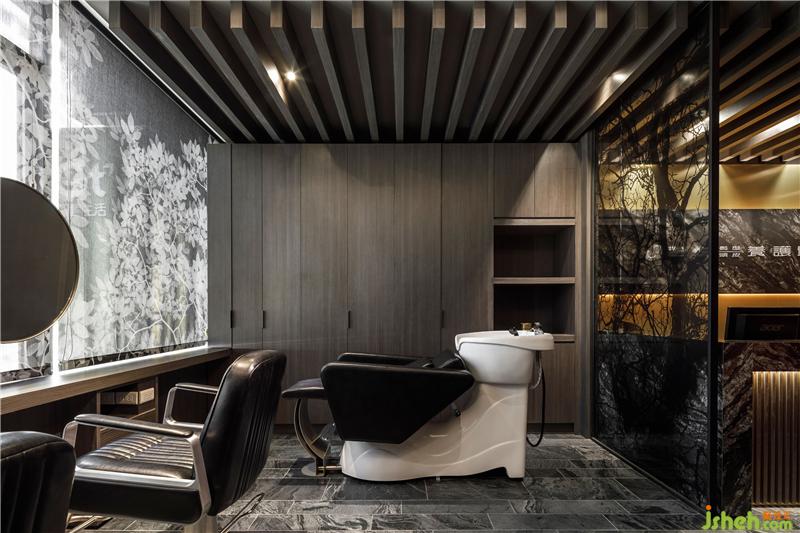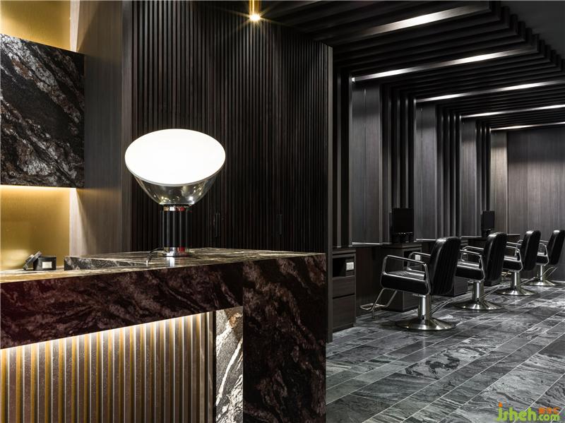 深色木紋及隔柵肌理、大理石紋路、金屬光澤,渴望自然圖騰,四種元素鋪成于同空間之中,藉由對于材質(zhì)本質(zhì)及光影的疊砌,讓空間有了敘事的語言,空間層次也匯聚及漫延于每個角落與視野之間。與外頭絢麗的街道上形成對比的發(fā)廊,以黑色為藍本,鋪陳于空間之中。