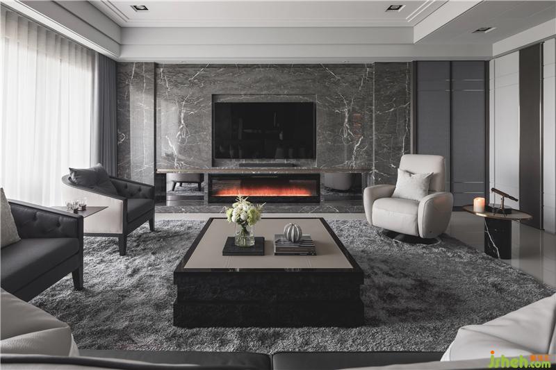 設(shè)計(jì)以水墨屏風(fēng)來界定空間定義,金屬分割更強(qiáng)調(diào)出整體層次感,看似大量的沖突,在屏風(fēng)背后產(chǎn)生的卻是另一種英式語匯,以壁爐為中心貫穿整體空間縱軸線,搭配深色木質(zhì)地,溫潤肌理豐美的大理石,體現(xiàn)整個(gè)空間品質(zhì)的要求,延伸出居所的內(nèi)斂與穩(wěn)重。