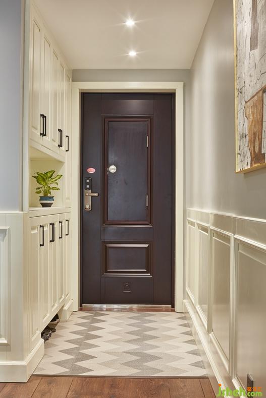 用不同材質(zhì)紋理,將門道與其他區(qū)域區(qū)分開,一體式的鞋柜與空間的完美融合,護(hù)墻板的延伸,讓區(qū)域之間得到一個(gè)很好的過渡。