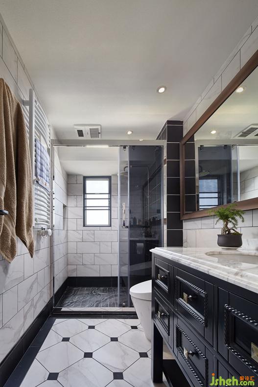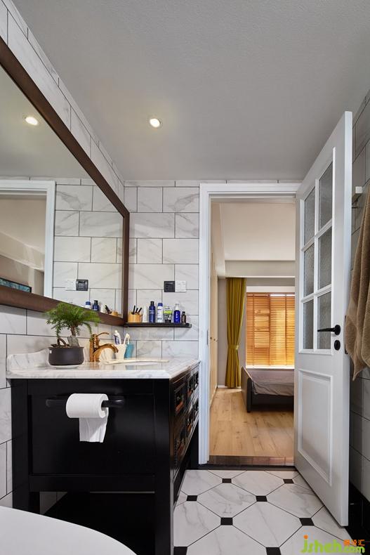 衛(wèi)生間:看膩了平常的磚,來一個(gè)"黑白"世界。
