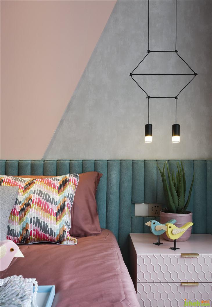 陽光灑進(jìn)房間,一抹弱粉與干灰呼應(yīng),柔和的晨光襯托臥室的柔軟,絲滑的觸感從指間滑到心間。
