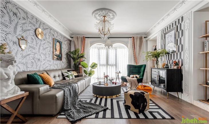 客廳空間的整體氛圍相對于餐廳,更顯沉穩(wěn),色調(diào)以灰白黑為主,沙發(fā)選用了淺暖灰色皮質(zhì)沙發(fā),造型現(xiàn)代干練,材質(zhì)經(jīng)久耐用,局部軟裝進(jìn)行跳色搭配,暖橙與墨綠在抱枕、窗簾、單人絨布沙發(fā)、亞克力雜志架以及裝飾畫上交相輝映,在這現(xiàn)代法式的基調(diào)上融入了新鮮活力,造型古典優(yōu)美的水晶吊燈,仿佛一個典雅的公主,扭動著她那婀娜的身姿,剔透柔美。