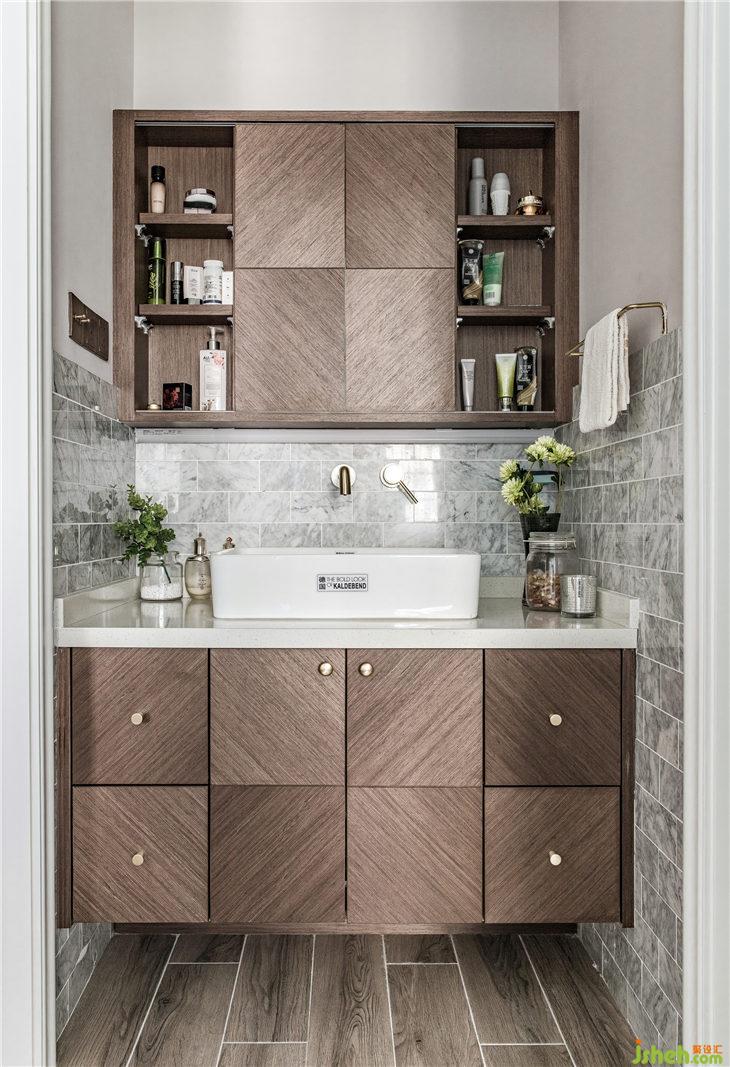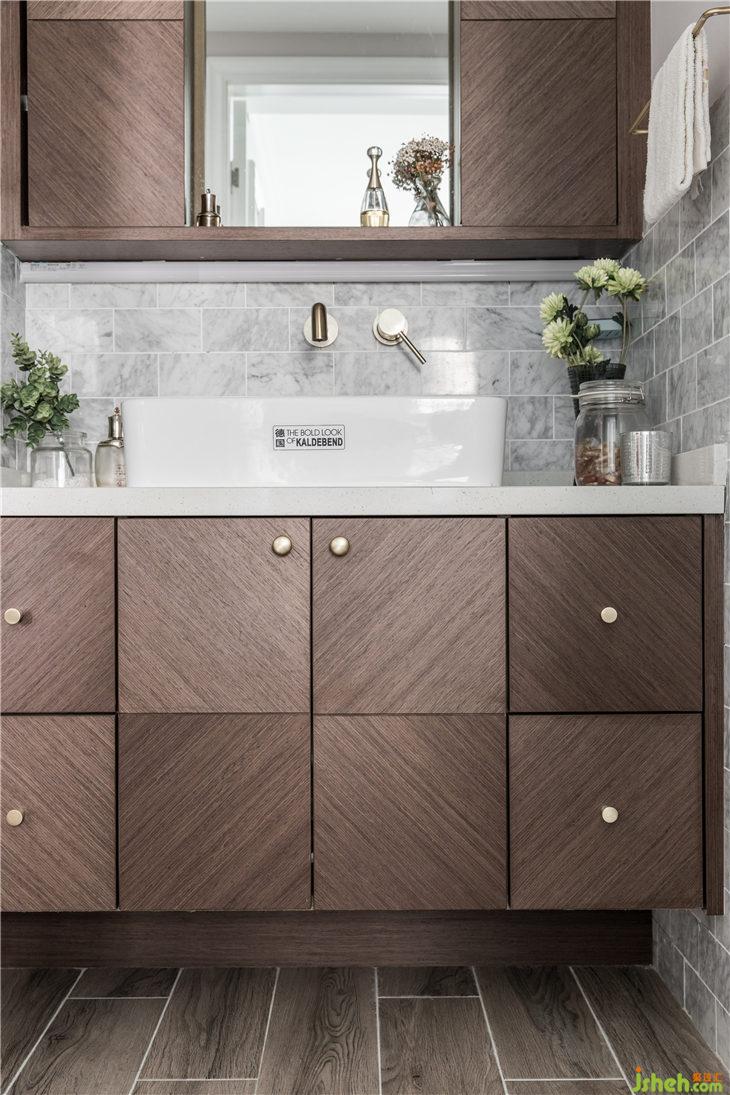 電視柜黑胡桃木飾面采用45°斜鋪,在簡單的紋理中突顯細(xì)微變化。