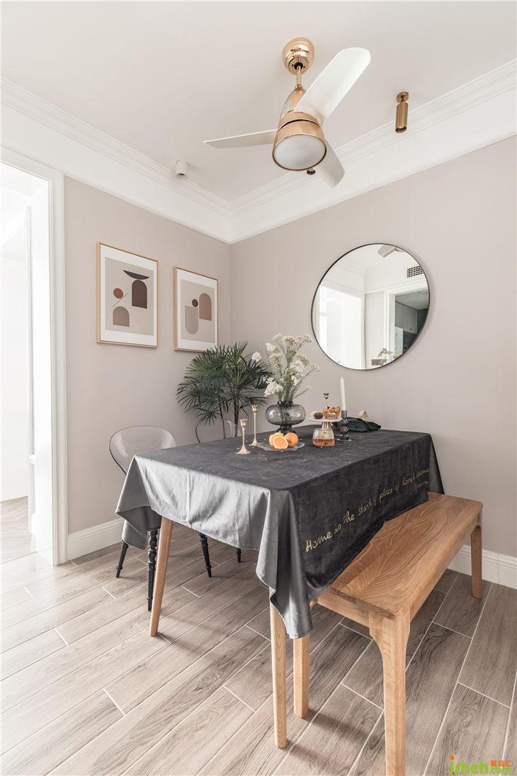 女業(yè)主特意強調(diào)餐廳要風(fēng)扇,可能是為了懷念舊時的美好時光。我們特意挑一款和風(fēng)扇結(jié)合的燈,照明納涼兩不誤。