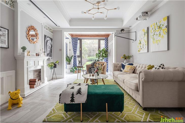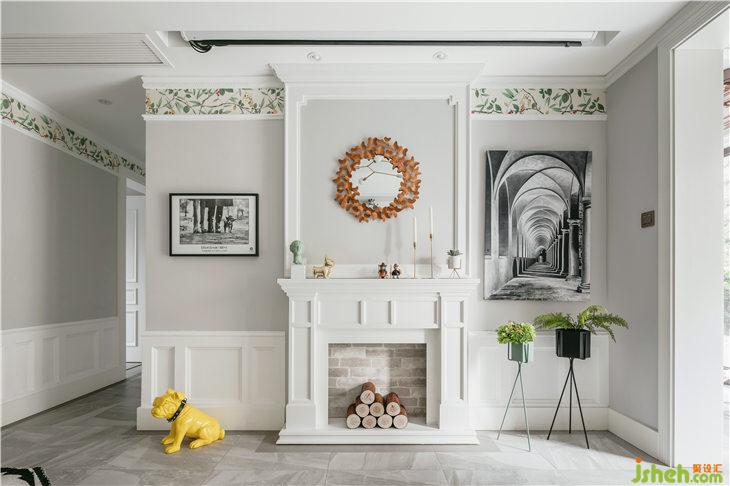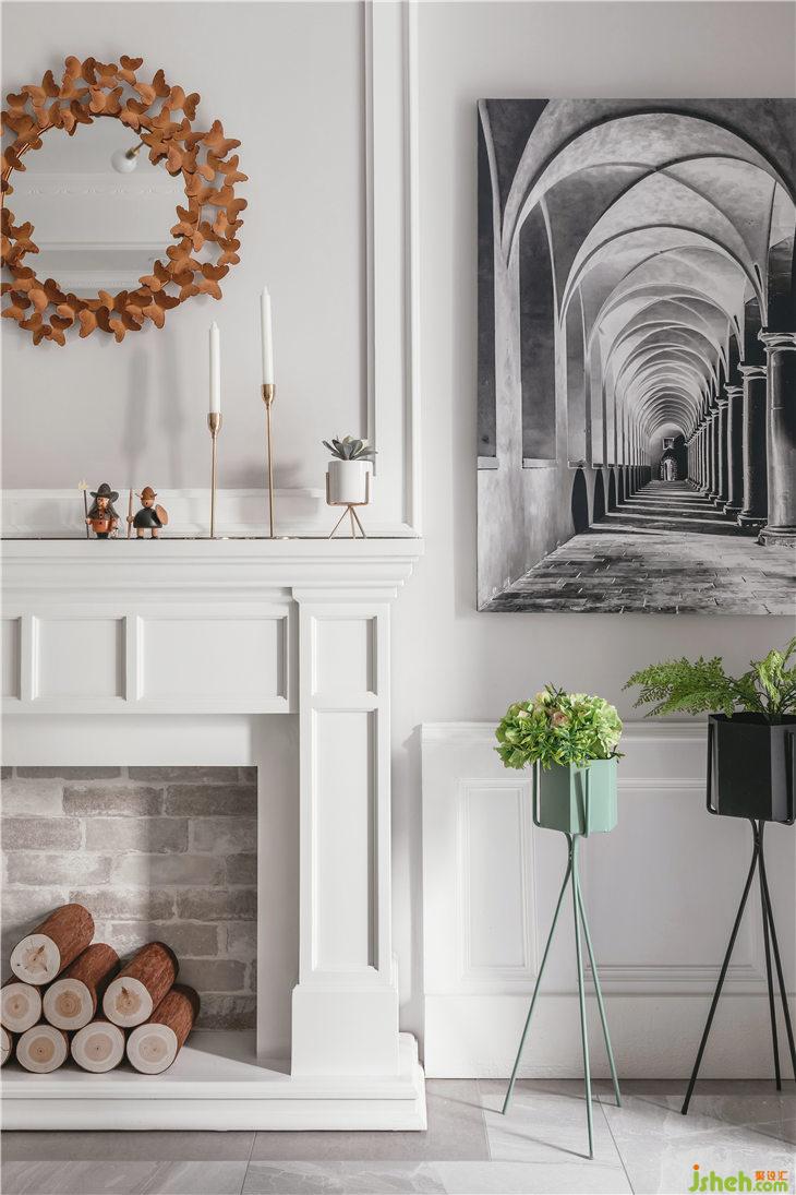 客廳我們?nèi)∠穗娨暀C(jī),用壁爐造型作為主背景,保留經(jīng)典美式元素,原電視機(jī)功能我們換成暗藏投影(ps:這種做法既能保證客廳的顏值,又能滿足功能性)