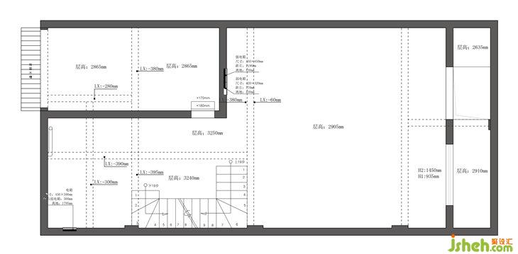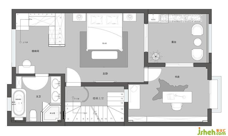 通往三樓主臥室的樓梯,以石膏板疊級(jí)增加吊頂層次,增加了樓梯間穹頂?shù)囊曈X高度。墻面灰色乳膠漆與吊頂進(jìn)行分色。房門外的樓梯平臺(tái),我們進(jìn)行了外加,挑出一個(gè)造型平臺(tái),讓門前的空間更加充足,不顯擁擠。