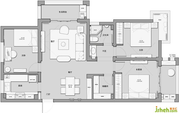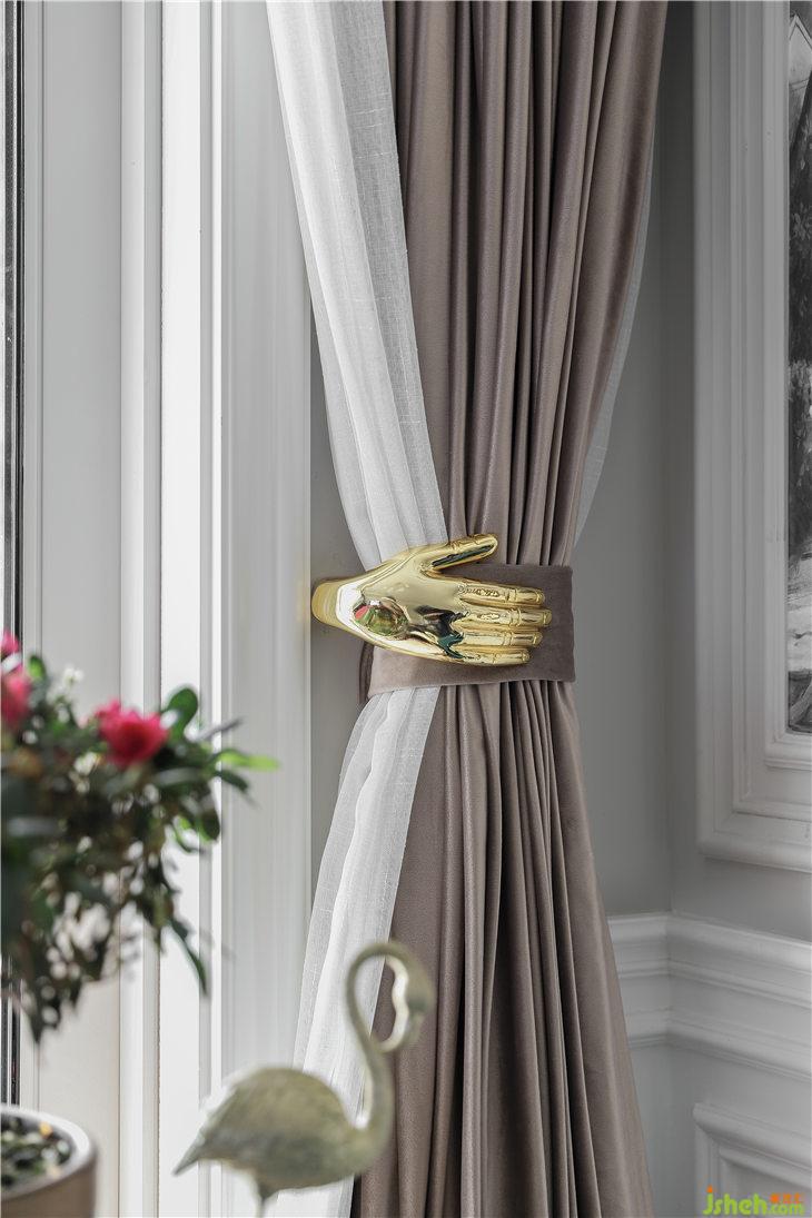 再小的細節(jié)也精致,精美的金屬窗簾抓手,體現(xiàn)了設(shè)計師在軟裝選擇上的獨特用心。