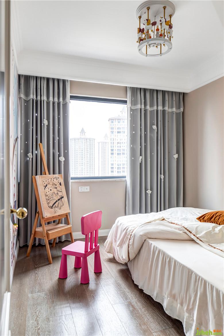 兒童房做了成長(zhǎng)式設(shè)計(jì),業(yè)主有一對(duì)可愛(ài)的雙胞胎女兒,雙方的父母都需要來(lái)照顧孩子,暫時(shí)給長(zhǎng)輩使用,一面墻童趣壁畫,搭配旋轉(zhuǎn)木馬頂燈,體現(xiàn)孩童趣味。