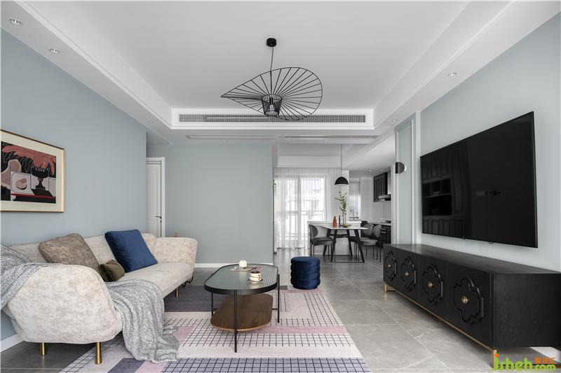 電視墻同樣以簡潔的石膏線為主,結合深色的電視柜,更為和諧。綠植的點綴也是一大亮點,為這個家?guī)砹藷o限的生機與活力。