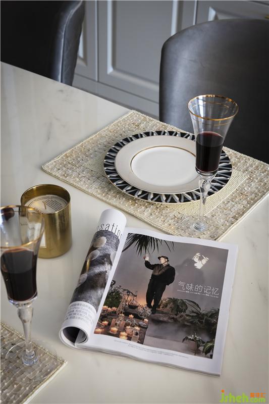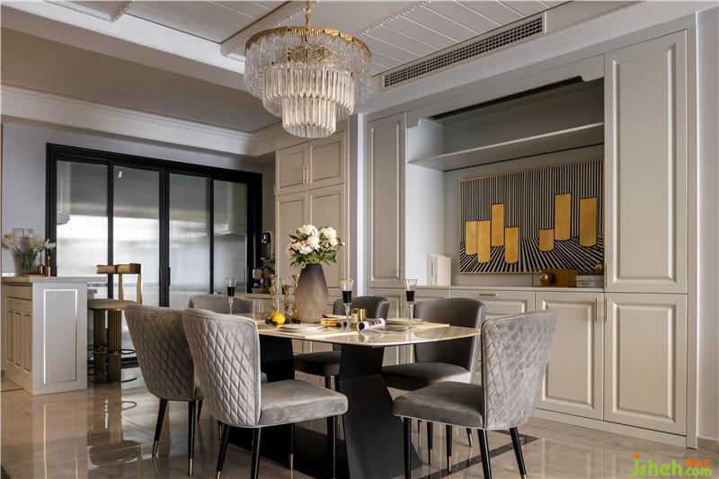 西廚暖黃色的壁畫與金屬水晶吊燈相呼應(yīng),讓人眼前一亮。