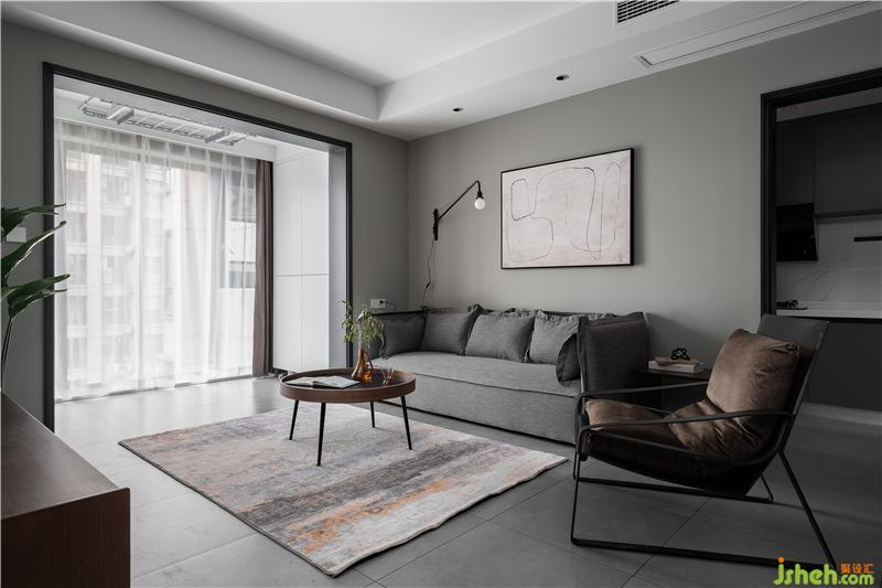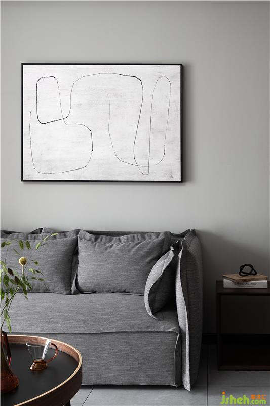淺灰色沙發(fā),輔之一把棕色單椅,沉穩(wěn)的氣場(chǎng)直接hold住全場(chǎng),再加上現(xiàn)代感很強(qiáng)的掛畫和黑色金屬壁燈,整個(gè)客廳裝修設(shè)計(jì)彰顯著簡(jiǎn)約藝術(shù)的氣息格調(diào)。