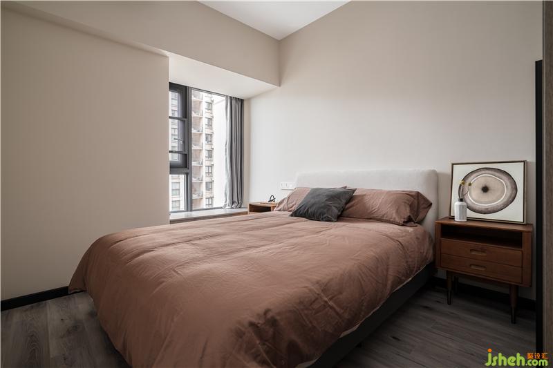 粉色永遠(yuǎn)是浪漫的主題,配上深色的家具,讓房間更有質(zhì)感,小飄窗讓臥室更加明亮。