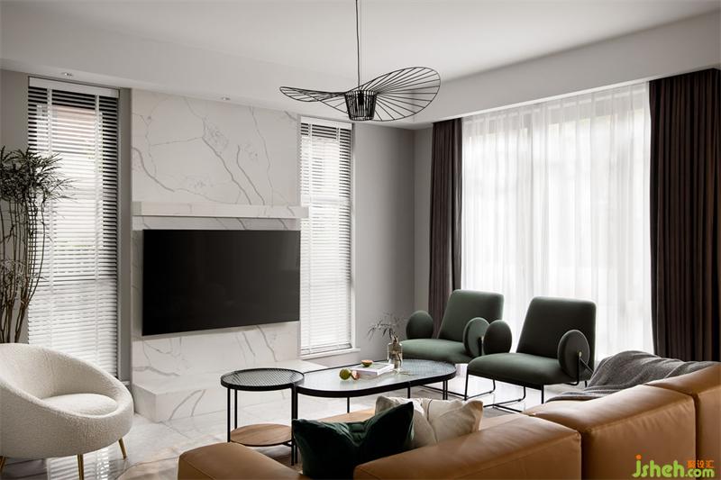 “棕+綠”的自然系配色,既彰顯典雅,又凸顯質(zhì)感,棕色的沙發(fā)除了高顏值以外,搭配也不易過時(shí)。墨綠色的加入,就像是在棕褐色的大地上,驀然出現(xiàn)一株株蒼勁的松柏,讓人眼前一亮,豁然開朗。