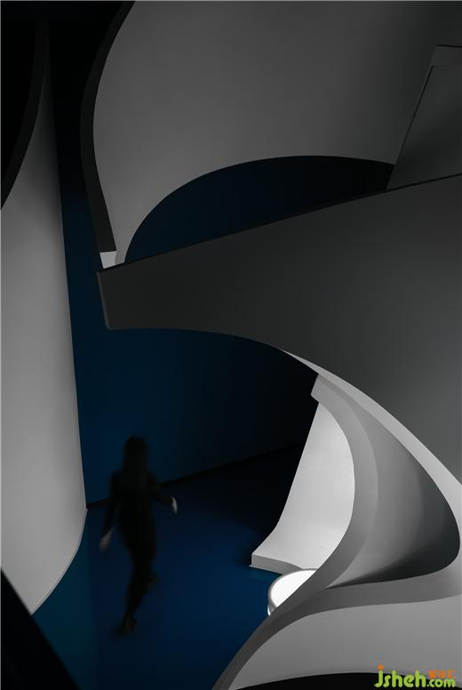 光影明暗的交錯(cuò),層次的不規(guī)則弧形門廊,照明展廳設(shè)計(jì)打造出結(jié)尾處的科技感與藝術(shù)感兼具的長(zhǎng)廊。大面積的空間留白,以干凈簡(jiǎn)約的設(shè)計(jì)語(yǔ)言,突出了深邃幽遠(yuǎn)的漫行之路,也讓視覺的焦點(diǎn),最終流連于光。
