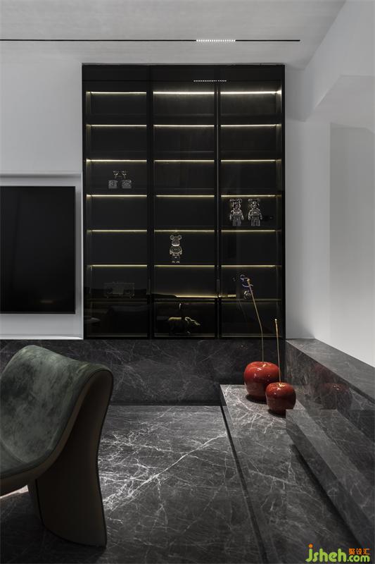 本案打破別墅原有建筑外觀的局限框架.結(jié)合居住的生活需求,從空間的營(yíng)造上出發(fā)?,F(xiàn)代元素的既簡(jiǎn)手法。會(huì)客廳的下沉式結(jié)合部分挑空。圍合感十足。即保留外建筑原有的弧形窗不被功能的抵用而有所破壞,同時(shí)增加了空間的合理利用,高低位收口輔助天際線的穿梭連貫,拉高了視覺(jué)上會(huì)客廳的高度,別墅設(shè)計(jì)保留原有別墅高廳的味道,又增加了2樓房間的懸浮感。