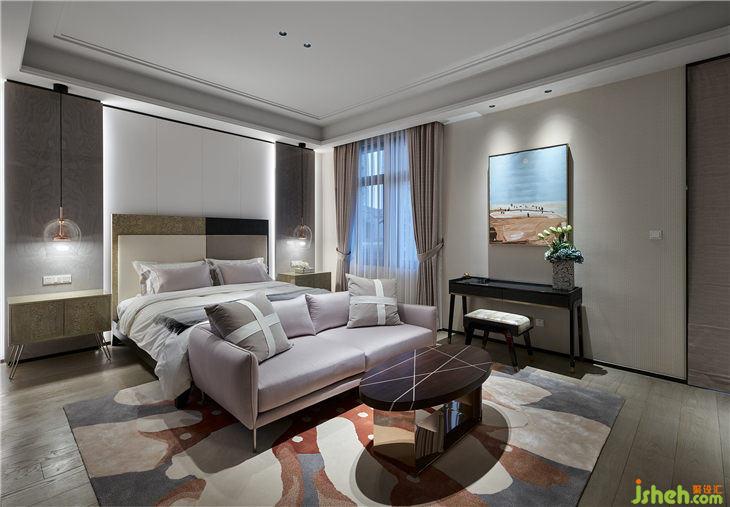 空間承載著生活,設(shè)計不僅與美有關(guān),更多的是去關(guān)乎人。開放性的生活區(qū),金屬銅條邊飾帶來的奢華感,質(zhì)感高貴的深灰色布藝皮革沙發(fā),無聲地訴說著高雅低調(diào)的空間語言。