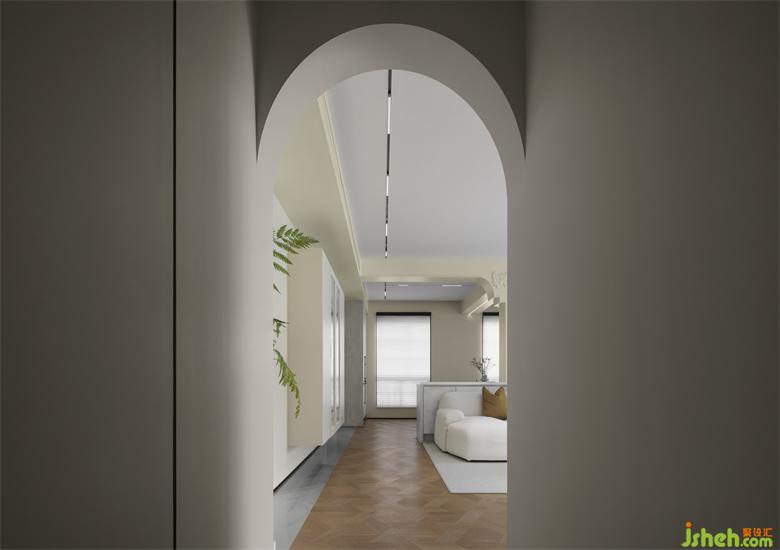 極具法式優(yōu)雅與復(fù)古浪漫的拱形門,是天然的框景器,家中的每一處流連,移步易境。藝術(shù)手法的設(shè)計表達(dá),柔化了空間的曲線美,延展著視覺上的同一性,豐富了空間形態(tài),最后達(dá)成精神上的浪漫主義彰顯。
