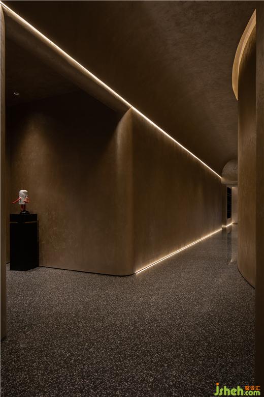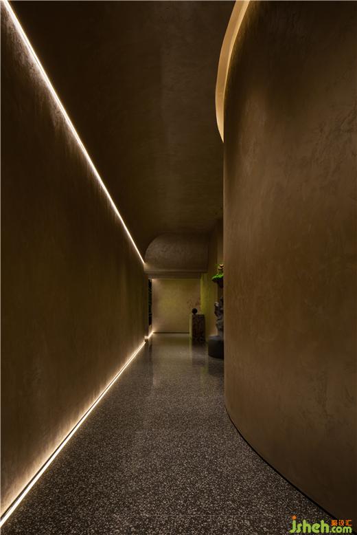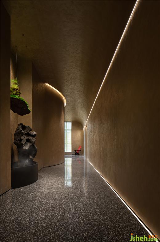 園林之趣一則是廊廡庭院的九曲連環(huán),一則是翠植怪石的奇崛清姿。CLUB設(shè)計在走廊折轉(zhuǎn)處布置山石虬枝的古典園林造景,堅韌遒勁的姿態(tài)與室內(nèi)一貫的含蓄風(fēng)格形成鮮明對比,為空間點染出藝術(shù)之魂。