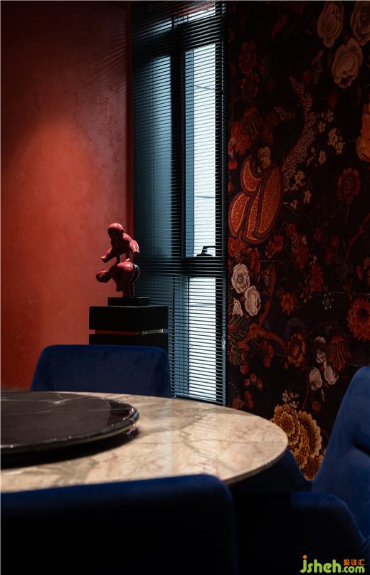 做舊墻面與新派油畫(huà)營(yíng)造出歲月的滄桑與奢華,隱隱的寫(xiě)意圖景如藏身于煙波中的遠(yuǎn)山弱水,浮動(dòng)的蝴蝶與雕塑擺件的參差相應(yīng)和,CLUB設(shè)計(jì)生動(dòng)詮釋了藝術(shù)情懷和自然哲學(xué)的詩(shī)意。