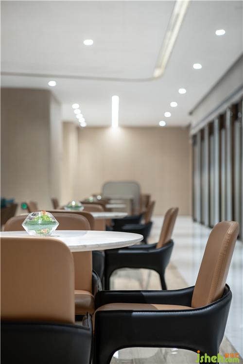 流線型燈帶散發(fā)出溫潤的光,帶著綿延的時間感,折射出空間內(nèi)和諧的洽談氣韻。