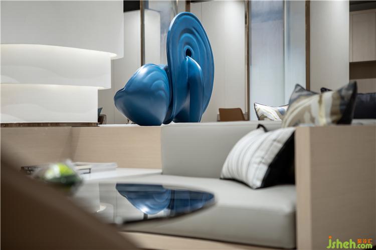 藍色藝術(shù)品打破原來空間的沉悶,動感有力的形態(tài)為空間注入一股積極蓬勃的動感和趣味。
