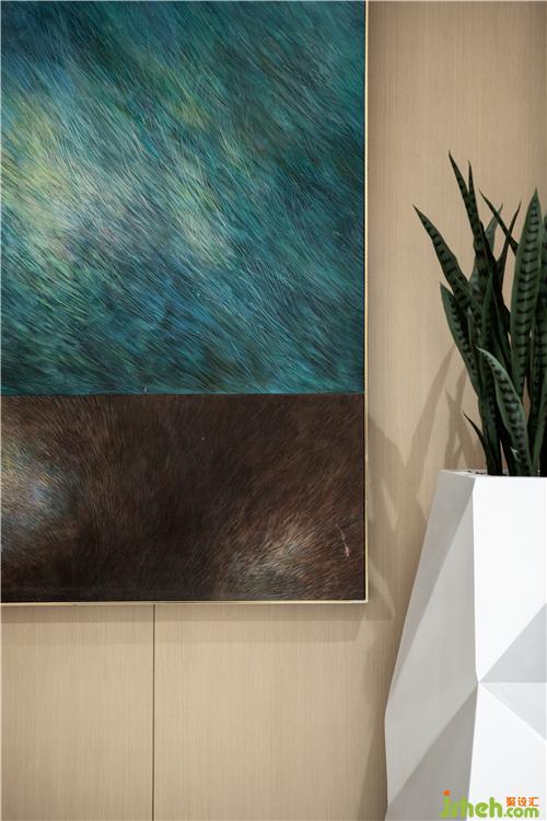 進入裝修空間,人形藝術(shù)裝置捕捉第一視覺落點,藝術(shù)氣息撲面而來,以有力的姿態(tài)帶引著觀者的思緒慢慢融入空間里。臨近接待臺而設(shè),讓客人有一種賓至如歸的尊貴感覺。