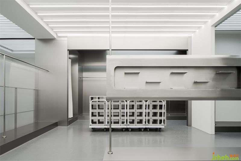 白色的空間,水泥地板,金屬質(zhì)感的衣架,感受這由空間帶來的未來感。