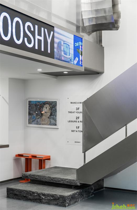 The blank wall, the embellishment of metal materials, and the rough surface of the stone work together to form the unique charm of this space.