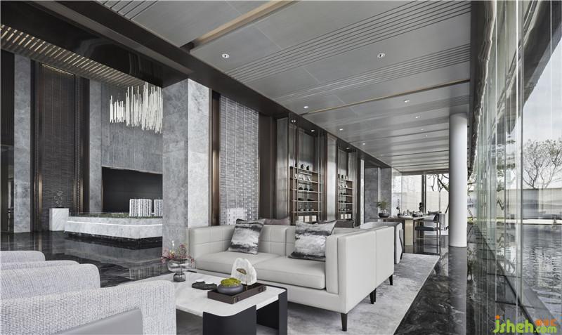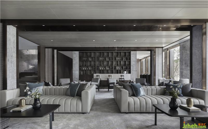 尊重每一次交流,享受每一段思考 —— VIP洽談區(qū)位于沙盤區(qū)的左側(cè),以灰白色為主色調(diào),鋪陳近似水墨山水的東方基調(diào),細膩地呈現(xiàn)出一個優(yōu)雅、寧靜的空間,同時自然地與窗外的水景相交融,影影綽綽的光感,更讓空間靈動起來,孕育了無形的生命力。