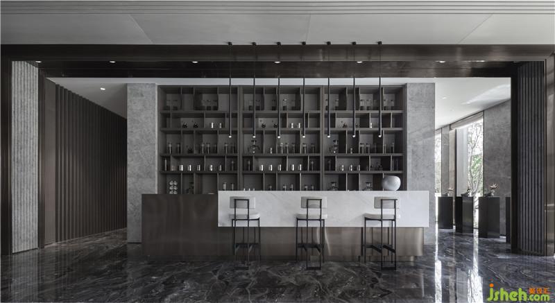 只憑單線條的勾勒,就散發(fā)出攝人心魄的力量,從吧臺到沙發(fā)區(qū),視覺區(qū)域內(nèi)各種優(yōu)質(zhì)材質(zhì)的運用——大理石、金屬、布藝軟包、陶瓷、玻璃,釋放組合的魅力,在整體上以謙卑的方式作收斂,淡然的空間更能包容內(nèi)容的喜憂。
