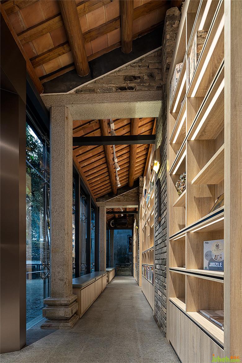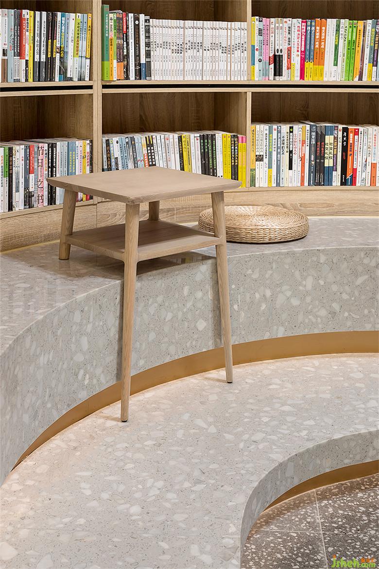 使用流暢的曲線和剛勁有力的直線設(shè)計(jì)的木質(zhì)書架,配以質(zhì)樸的坐墊和別致的邊幾。讓書籍和文化以多樣化的形式出現(xiàn)在書院的每個(gè)角落,在感受時(shí)光流逝的同時(shí),更能讓每一位讀者從中品味到深深的歷史印跡。