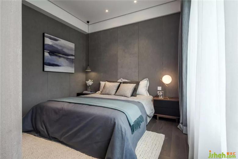 主臥空間線條舒緩,藍灰色調優(yōu)雅沉靜,一體設計的走道,使空氣自然流通。