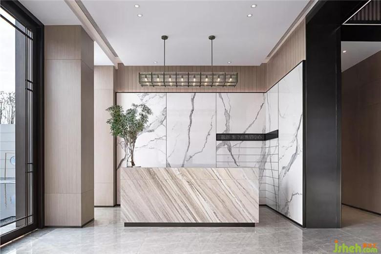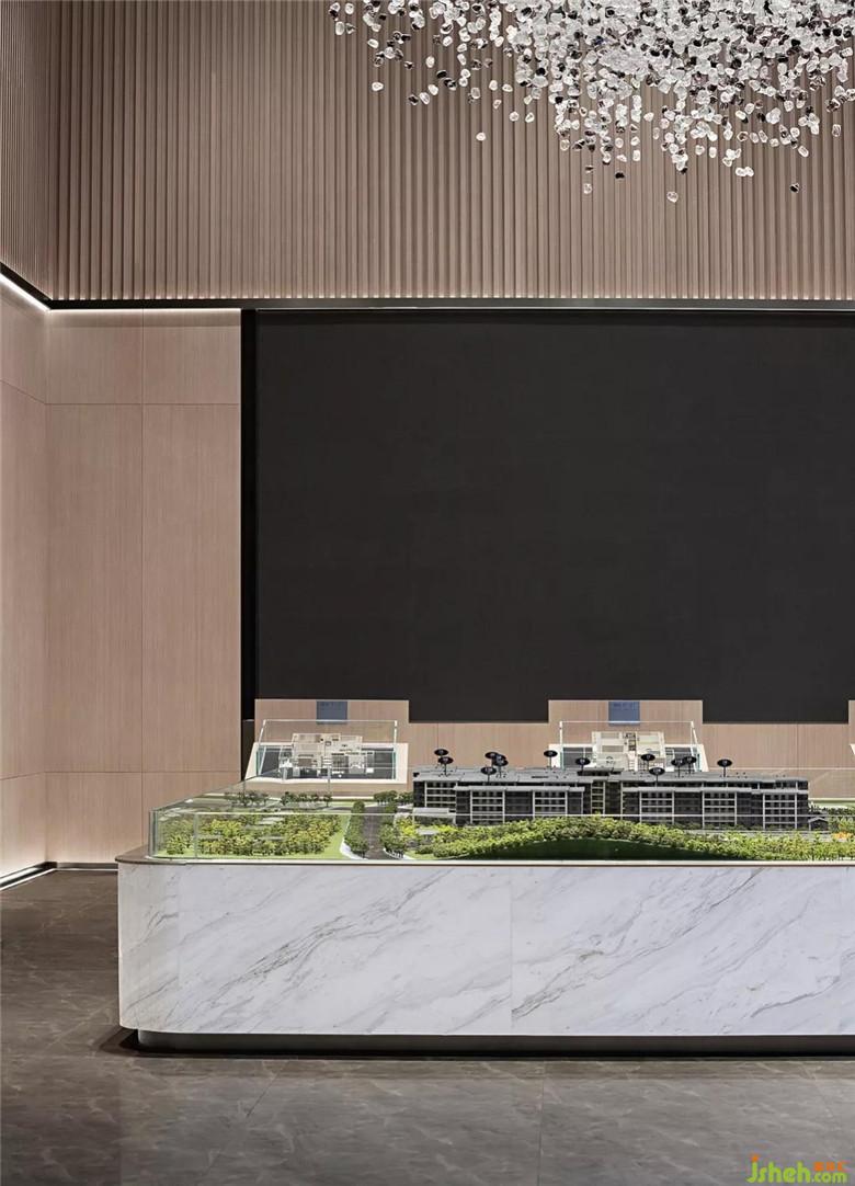 洽談區(qū)座位對稱排布,疏落有秩,色彩如淡水墨漬染宣紙一般,雅白、卡其、原木色洋洋灑灑揮寫,配合簡約內(nèi)斂的木材肌理,取得適宜生活的溫度平衡。懸掛的山水紗簾,素雅的瓷器,未經(jīng)打磨的天然原石等,同時散發(fā)出和諧統(tǒng)一的東方情調(diào)。