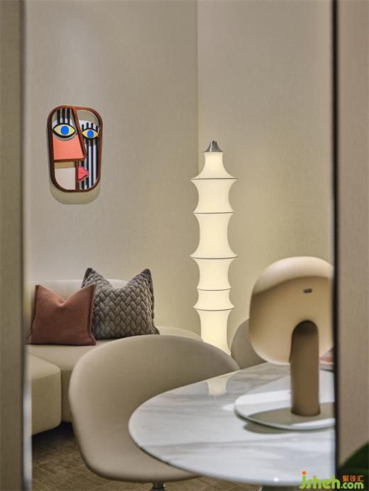 空間不見(jiàn)光卻籠罩上一層薄薄的光感,將整體氛圍調(diào)適至最接近生活的感受,高度自由的混搭布設(shè),讓空間的每一處流轉(zhuǎn)著生活的隨性與小幽默。