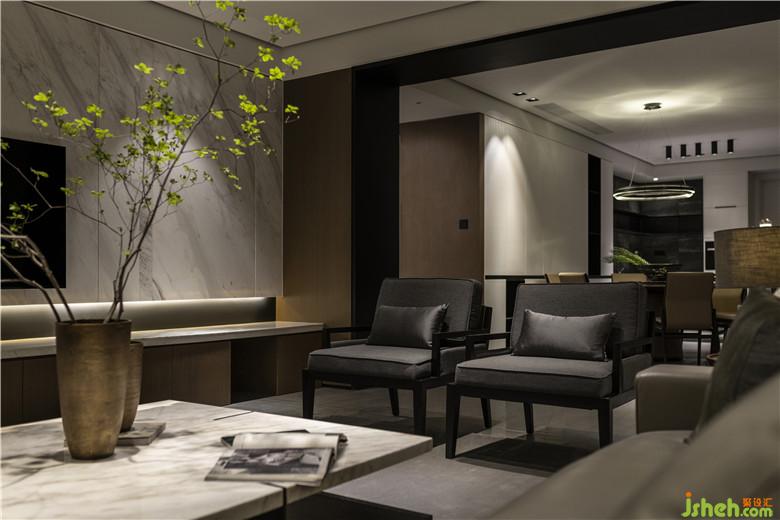 留白是中國水墨畫中獨(dú)有的一種構(gòu)圖方式,它產(chǎn)生于唐代,成熟于宋代,曾多次在著名文人墨客的作品中展現(xiàn)。在本套作品中,室內(nèi)設(shè)計(jì)師特意將這種留白的審美方式呈現(xiàn)在空間當(dāng)中,形成留白美學(xué)。摒棄原來白墻所滯留的呆板,用大面積的石材加木飾面的組合形成留白意境,以無相表達(dá)意象。只有保持一定的空,才能其用無窮。中界其意不以界限為局限,保留一定的空白即是舍棄,而部分舍棄才能終得成全。