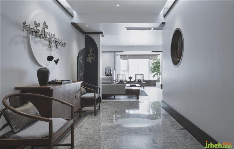 本案定位是現(xiàn)代、東方,但不想氛圍太過(guò)嚴(yán)肅,所以室內(nèi)設(shè)計(jì)師以庭院為核心,在空間中營(yíng)造恬淡、閑趣的輕松氛圍。