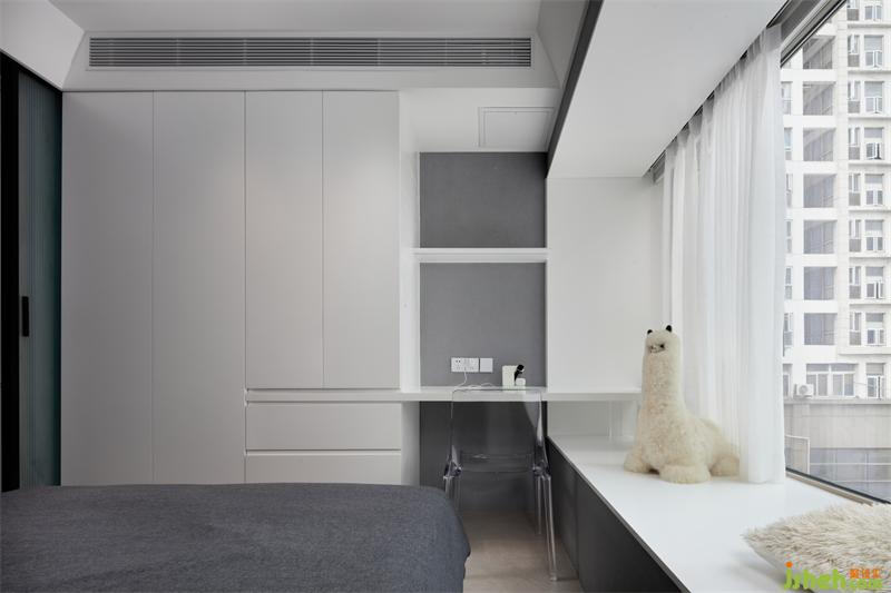 小空間也要注重體塊的關(guān)系,在有序的排列下還能營(yíng)造出一種豐富的節(jié)奏,其靠墻空間,書桌與柜體充分結(jié)合,放眼一看,現(xiàn)代感十足。