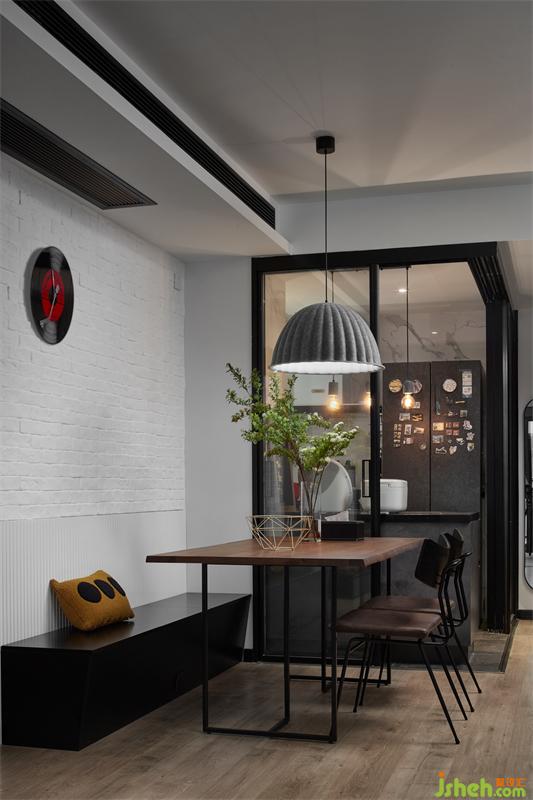 入戶處復古的白色文化磚墻,搭配無把手的深灰色鞋柜,兼具時尚與藝術感,現代與工業(yè)風完美融合,將屋主的品位與個性展現的淋漓盡致。