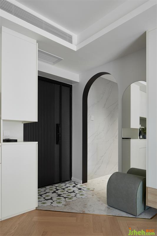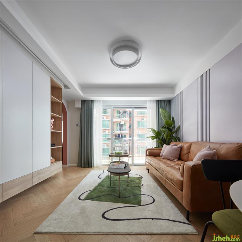 一面是柔和的色調(diào),利落的線(xiàn)條墻面,顯氣質(zhì)的人字拼木地板,拱形門(mén)元素,暖洋洋的陽(yáng)光映照在舒適的沙發(fā)上,整個(gè)空間賞心悅目,又獨(dú)具生活氣息。
