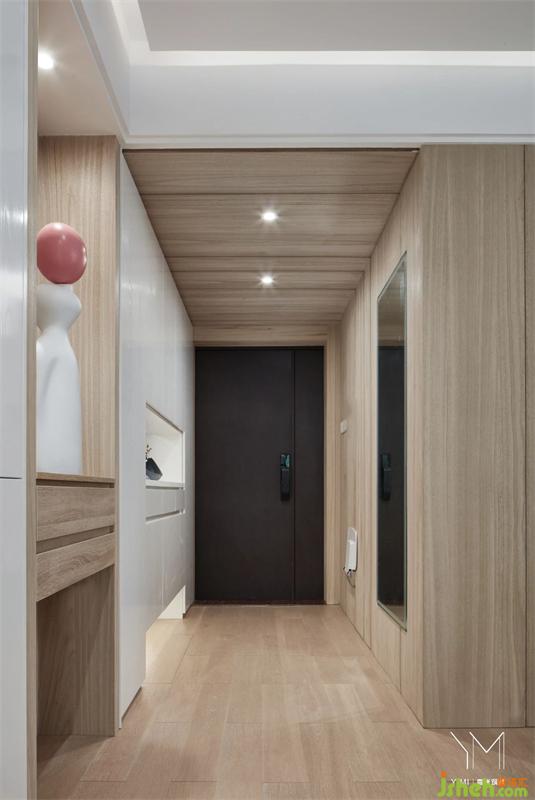1、入戶處折疊換鞋凳及木飾面嵌入式換衣鏡,既方便使用又美觀且不占用空間;