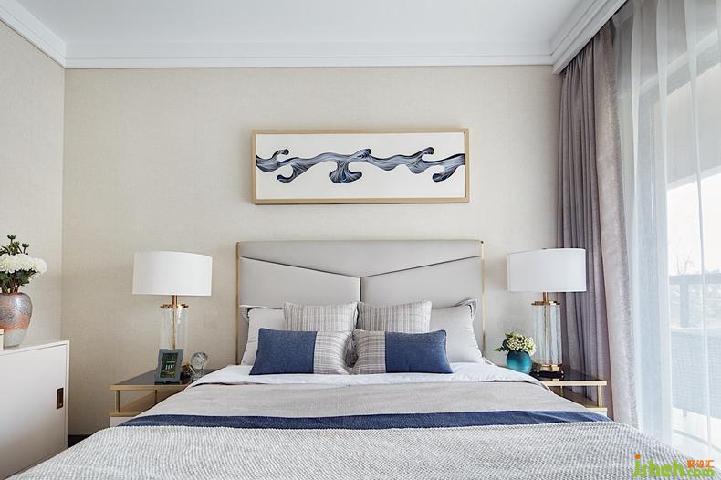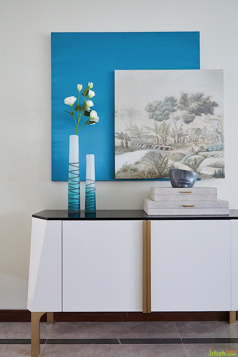 選擇以藍做點綴,舒適的暖素色為基調(diào)