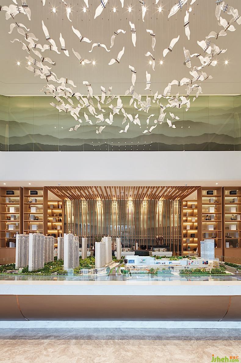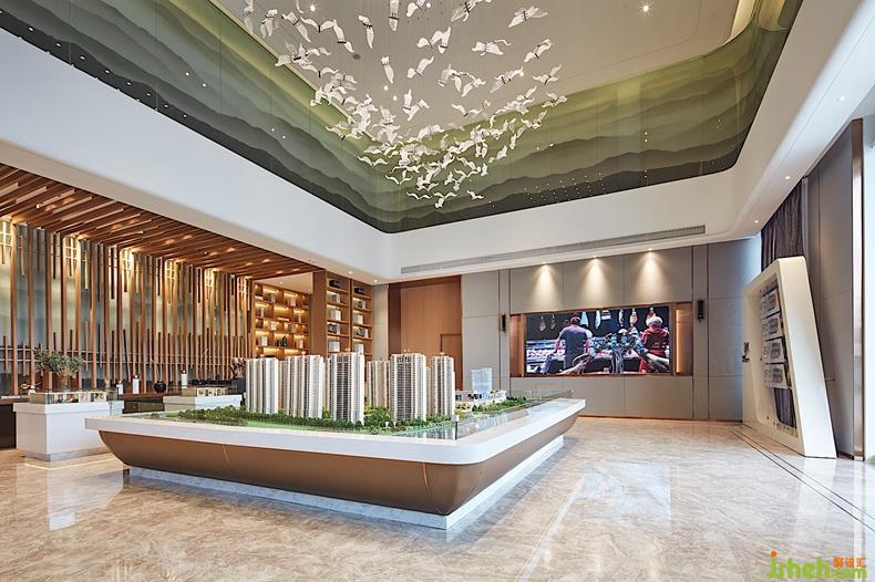 落地窗將窗景引入室內(nèi),增加空間的趣味性,通透感使人置身其中更加放松。入口沙盤吊燈形狀被起伏的山水畫縈繞,將現(xiàn)代都市與自然靜謐的人文生活展現(xiàn)出。設(shè)計公司