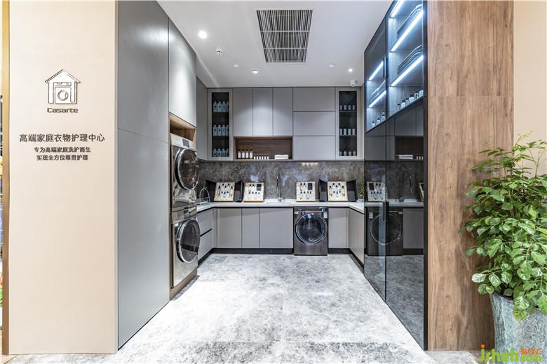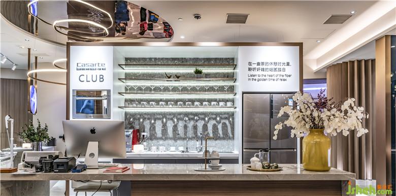 入口形象區(qū)以水鏡倒影與漣漪之光的設計,做為門市主題的開場呈現(xiàn),延伸了天花的空間視覺感。柔和的大地質(zhì)感做為水流與日光間的緩和過場,產(chǎn)品展示區(qū)、衣帽間、洗衣房特別加入木質(zhì)拼接地板、木頭格柵、大理巖面、灰楬皮革等自然質(zhì)地的材料,提升舒適氛圍。