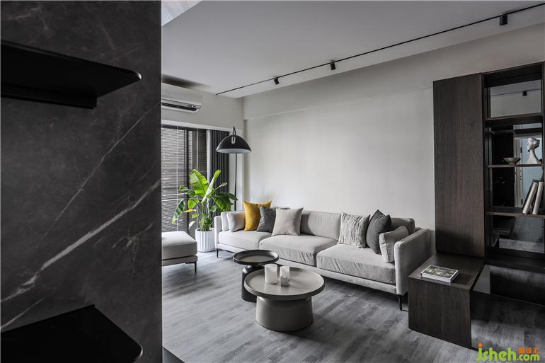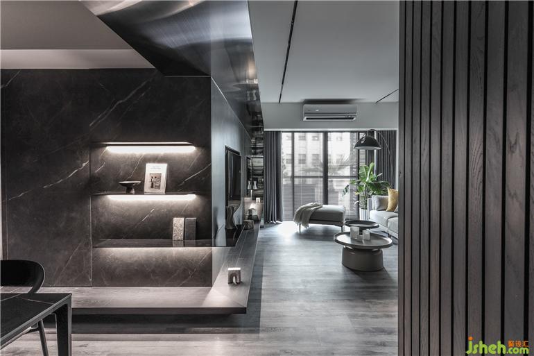 喜歡旅行、時常飛行各地工作的屋主一家人,回到家的第一眼就充滿著慵懶與愜意:低明度色彩的沙發(fā)延伸至窗邊的植栽,家裝設(shè)計與開闊的陽臺形成一幅明亮的風(fēng)景。電視墻以大理石的自然紋面為襯底,下方的木質(zhì)層板展示著屋主收藏的雕塑,生活上的雜物收納則安排在玄關(guān)與餐廳的柜體,客廳僅保留最純粹的機能—簡單放松。