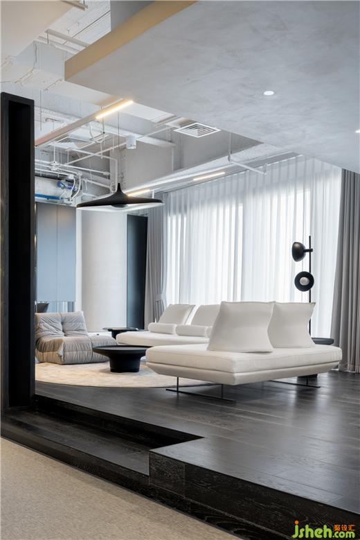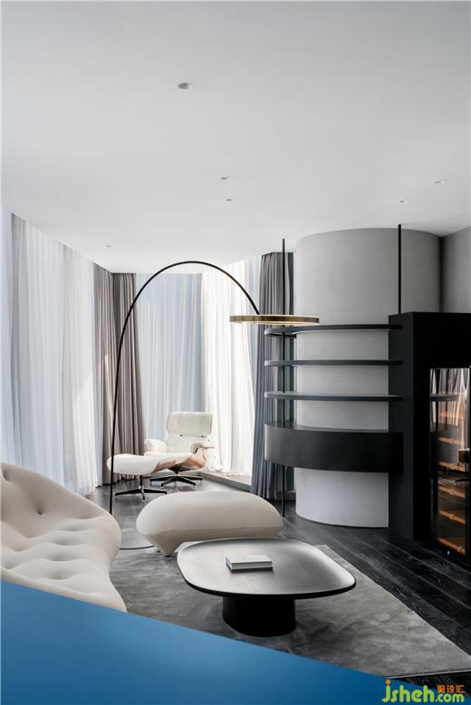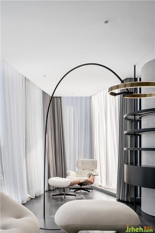 在格局的分配上,我們以生活場(chǎng)域包覆的概念為出發(fā)點(diǎn),辦公室設(shè)計(jì)將辦公區(qū)安排在空間的中心,會(huì)談室、品酒室、書法茶室等休閑區(qū)域以L弧型環(huán)繞,弧線柔和的設(shè)計(jì)語(yǔ)匯,取自于建筑的外觀造型,低飽和度的中性色彩,選搭白色為主的家具軟件,在現(xiàn)代簡(jiǎn)約的質(zhì)地中揉入一抹輕古典的質(zhì)韻,為空間注入典雅的生活氣息,最大的點(diǎn)綴顏色,是來(lái)自于窗外的湛藍(lán)天空,云朵與藍(lán)天,永遠(yuǎn)是這里最愜意的工作端景。
