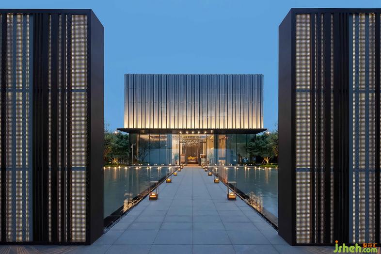 "君子如水,隨方就圓,無處不自在。"上熙府售樓處便位于這樣一個被水環(huán)繞的自在之地。室內(nèi)設(shè)計師建筑通過漂浮在水中的玻璃棧橋連接陸地,步入其中,如從繁華走入鏡花水月,使來此售樓處的人們暫時躲避喧囂,尋得一片寧靜之地。